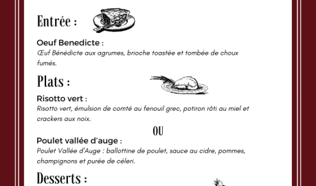 À l’occasion de la Saint-Valentin, nous avons le plaisir de vous proposer un menu spécialement imaginé pour cette soirée placée sous le signe du partage et de la gourmandise. ...